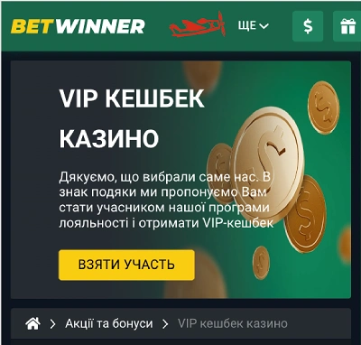 Betwinner VIP Club: кешбек від казино